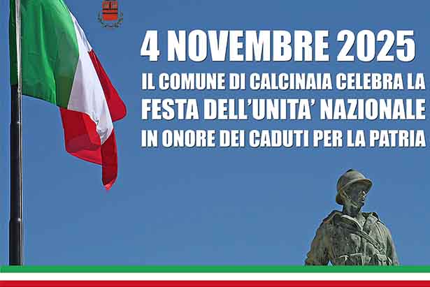 L’occasione per fare memoria di questi importanti passaggi storici e di tutti coloro che hanno perso la vita in guerre e conflitti sarà la Giornata dell’Unità d’Italia e delle Forze Armate. Il Comune di Calcinaia celebrerà la ricorrenza Martedì 4 Novembre con la deposizione delle corone di alloro ed un corteo guidato dal Sindaco del Comune di Calcinaia, Cristiano Alderigi, dagli amministratori, dai rappresentanti delle Forze dell’Ordine e dai cittadini e dalle cittadine interessate.