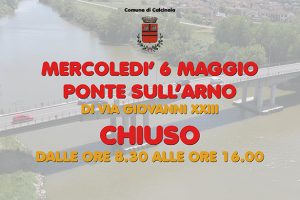 Si informa la cittadinanza che nella giornata di mercoledì 6 maggio 2026, dalle ore 08.30 alle ore 16.00, il ponte sull’Arno di
