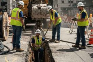 Lavori di scavo per la posa di nuove linee elettriche a Fornacette
